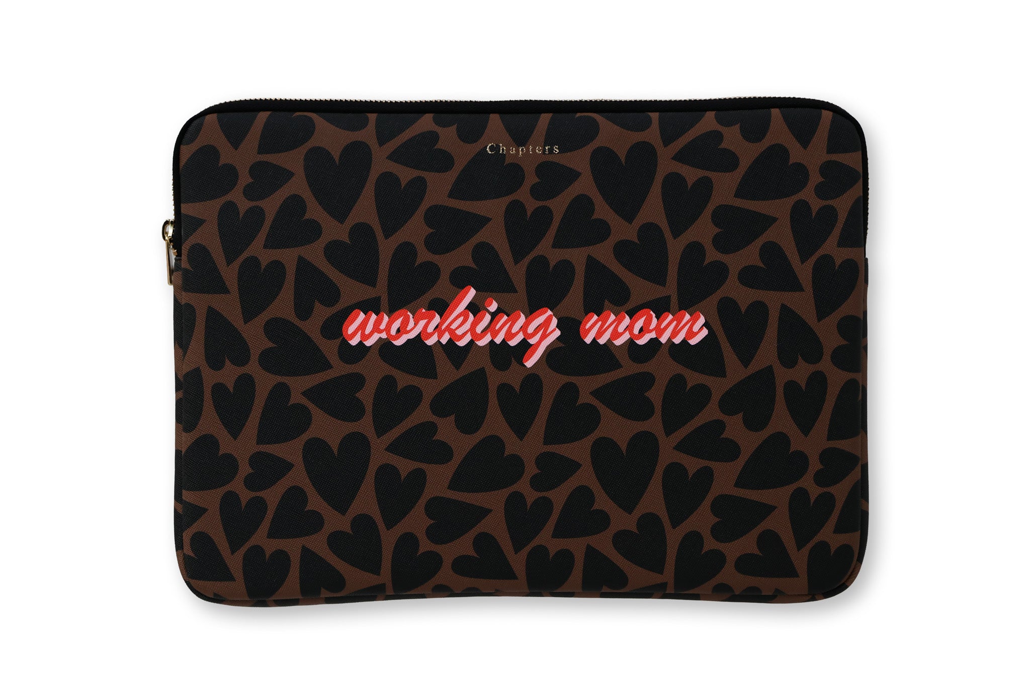 Laptop Case, Black & Brown Hearts - Working Mom